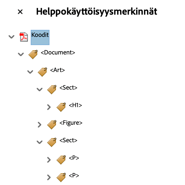 Asianmukaiset tunnisteet (tagit), joiden avulla ruudunlukija ymmärtää rakenteen